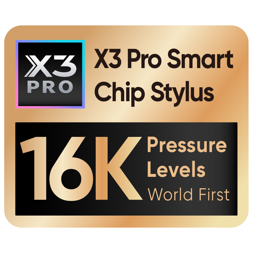 Introducing X3 Pro Smart Chip Stylus, a true breakthrough innovation that boasts industry-first 16K pressure levels —100%* higher than that of its peers. It delivers the smoothest and most precise lines ever, empowering you to excel in hyper-nuanced creation and beyond.