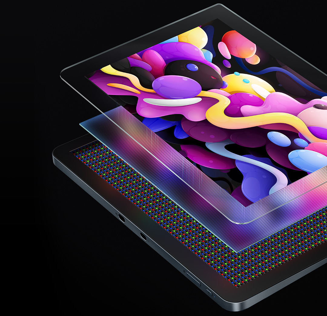 The screen and display are seamlessly laminated to avoid parallax errors between the stylus nib and cursor, precisely positioning every single one of your strokes.