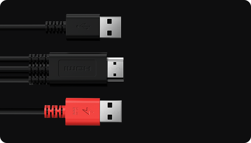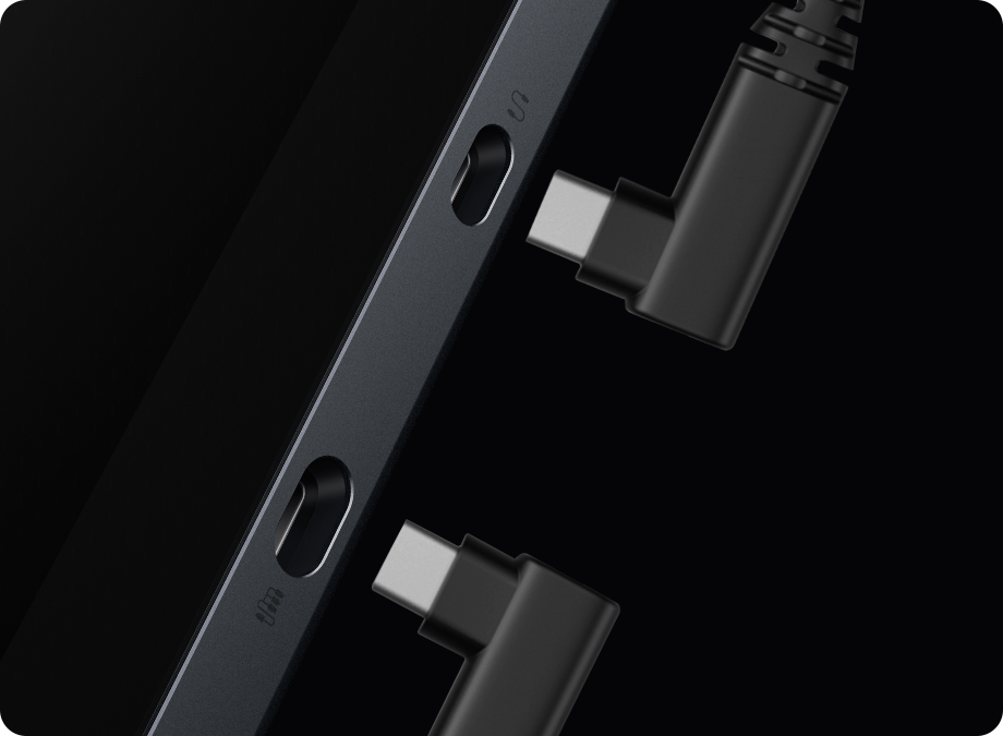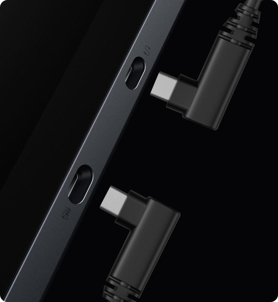 Dual reversible ports can be connected to a PC either way — up or down, via HDMI 3-in-1 cable* or full-featured USB-C cable. Charging and data transmission at once. Ditch the clutter and keep connected.