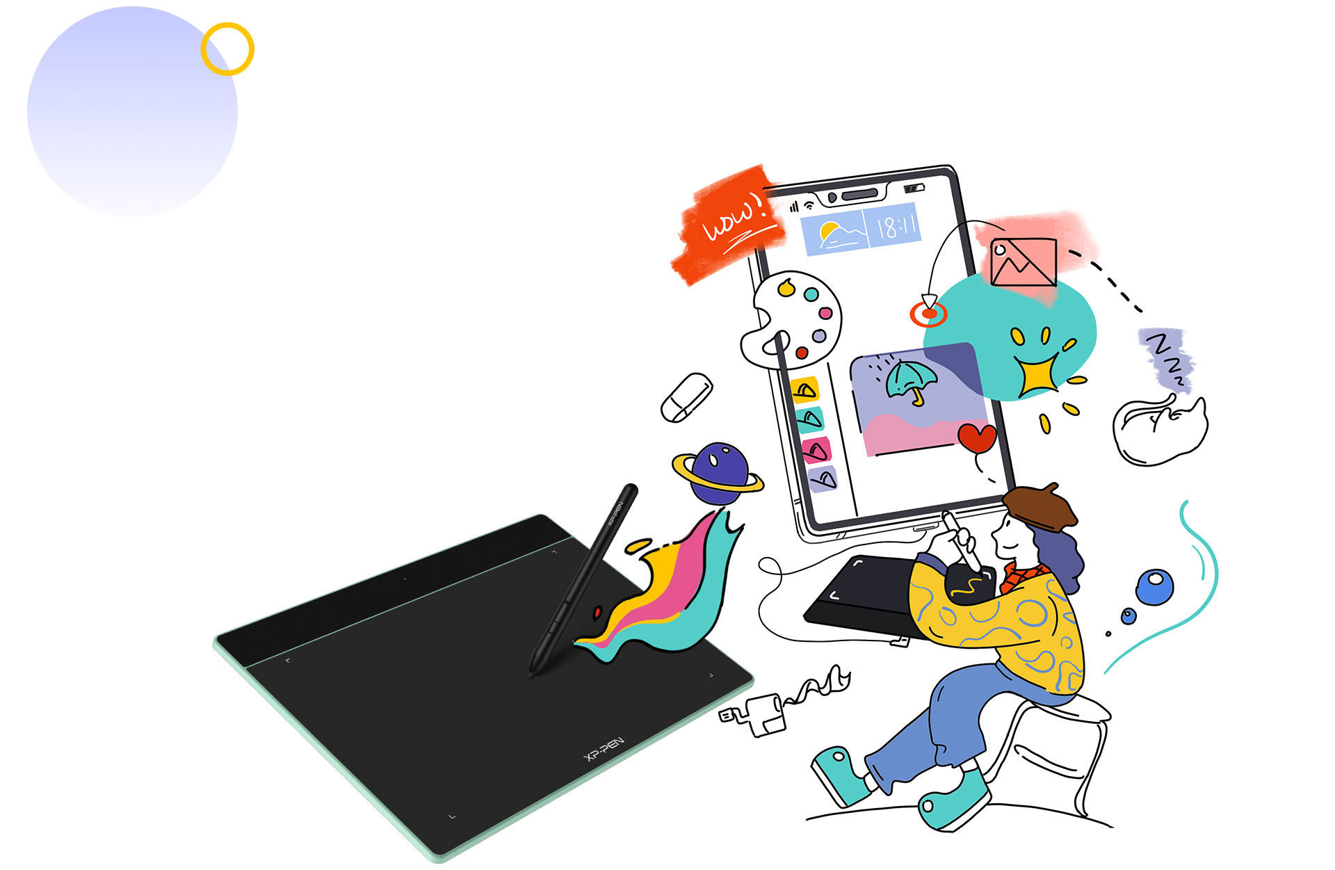 Deco Fun supports 8,192 levels pressure sensitivity and a 60° tilt function. Whether you are sketching, color painting, designing, or doing other creative work, it does a great job! You can even draw on smartphones and tablets with Android system. Let's get creative now!